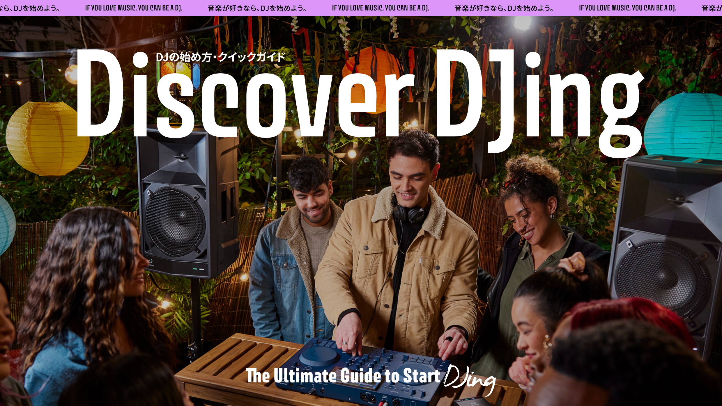 AlphaTheta DJ Guide landing page2026-01-22AlphaTheta株式会社によるDJ人口拡大の取り組みとして、DJ初心者や音楽ファンへ向けたガイドサイトを制作しました。DJの楽しさや手軽さを伝えるため、基本手順や手法を直感的に理解できる構成やデザインとし、新たなユーザー層への理解促進やDJ文化の普及を目指しています。