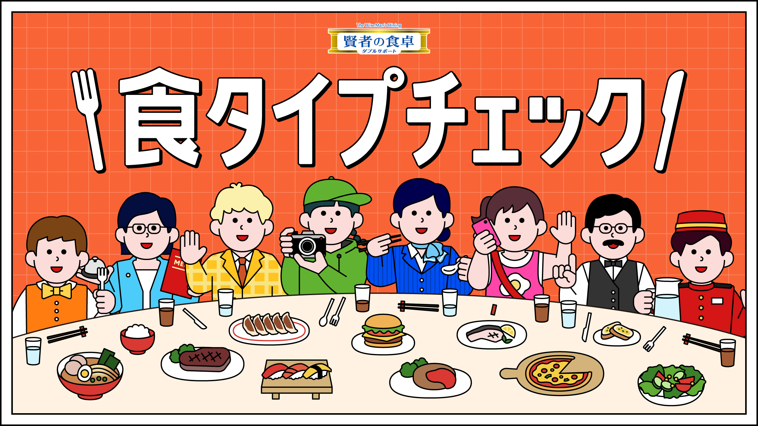 SYOKU TYPE CHECK2026-04-13前向きで楽しい食の時間を応援する「賢者の食卓 ダブルサポート」が「食タイプチェック」を公開。自分や相手の食卓でのキャラを知ることで食事選びをスムーズにし、誘うきっかけを生むコンテンツ。